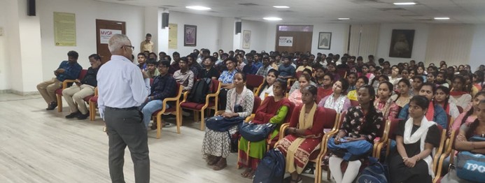 A key highlight was the guest lecture by Shri T. Sivaprasad, an Electrical Engineer with over 40 years of experience in the steel and power sectors. A UGC Fellow and retired General Manager (Electrical), Visakhapatnam Steel Plant, he shared valuable insights on process upgrades, energy efficiency, and global career opportunities.