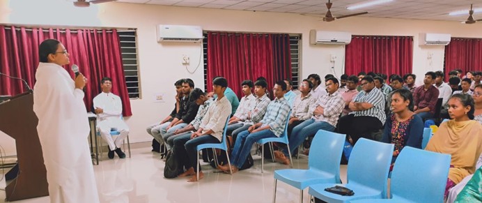 In addition, the members from the Brahma Kumaris, Vizianagaram – BK Subbareddy, BK Vaishnavi, BK Saraswathi, BK Hemalatha, BK Manjusha, and BK Padmasri – delivered inspiring sessions on Yoga & Meditation for a Healthy, stress free & Successful Life. These sessions emphasized stress management, inner peace, and mindfulness as essential tools for academic excellence and personal well-being.