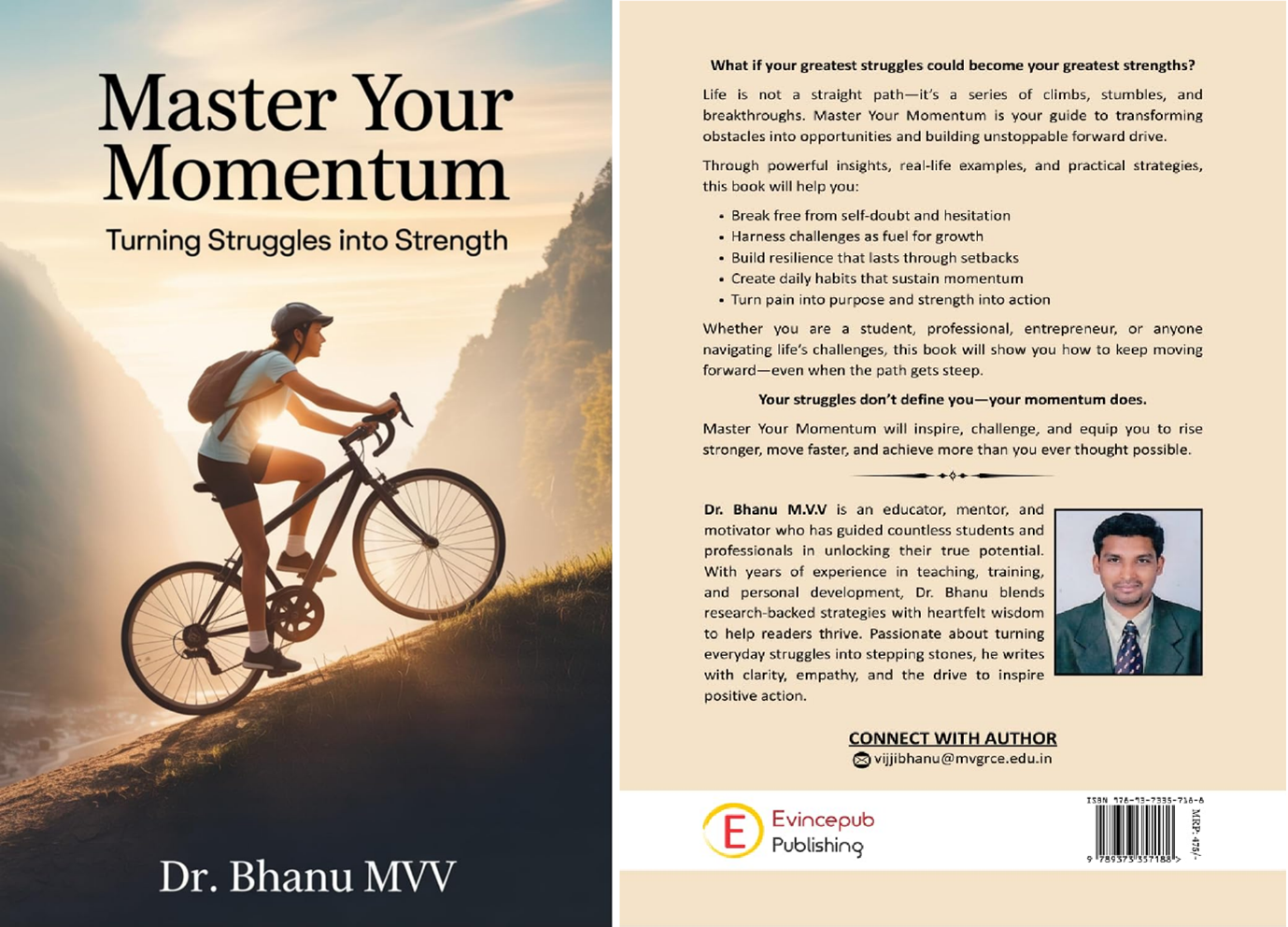 The Management, Principal, and Faculty of MVGR College of Engineering (Autonomous) proudly congratulate Dr. Bhanu MVV, Training & Placement Officer and esteemed faculty member of the institution, on the successful publication of his book titled “Master Your Momentum: Turning Struggles into Strength.” The book has been officially released and is now available on the Evincepub Store as well as other major online platforms including Amazon and Flipkart.